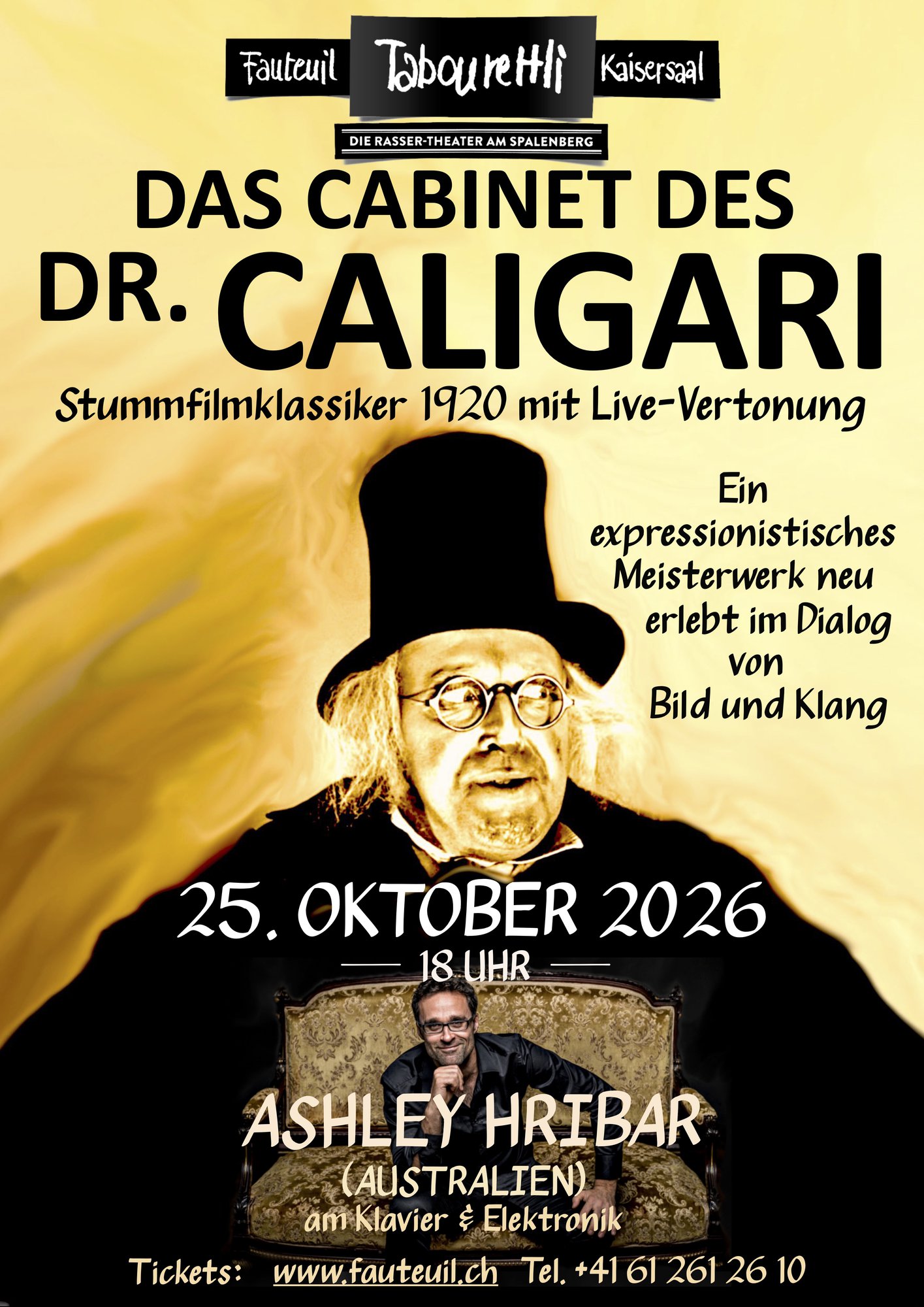 Tauchen Sie in die düstere Welt dieses Klassikers des expressionistischen Stumfilms ein, begleitet von der facettenreichen Klanglandschaft der Live-Musik von Ashley Hribar.