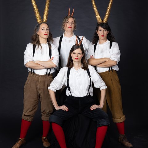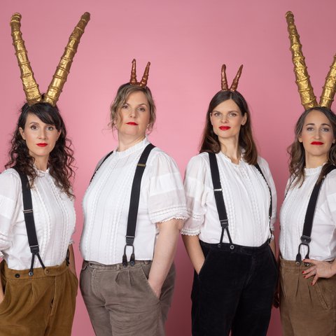 Nach dem erfolgreichen Programm «Mir Froue heis luschtig» setzen The Sparklettes nun noch einen oben drauf: In ihrem neuen Bühnenprogramm sind vier Jazz-Sängerinnen auf Mission in der Tourismusbranche. Ob am Schwingfest, zum Après-Ski, zur Tunnel-Eröffnung oder im Nachtprogramm des Palace Hotels: Hier winken ungeahnt hohe Gagen. Also wird heimisches Lied- und Gedankengut munter strapaziert, aufgepeppt, reharmonisiert, feministisch aufbereitet und je länger je Gems-mässiger gebockt; auch die Songs der «heiligen Platzhirsche» der Schweizer Musikszene werden auf die Hörner genommen. Die vier virtuosen Stimmen bringen so ihre Anliegen getarnt mit szenischem Witz und helvetischem Flair unters Volk. The Sparklettes wie man sie kennt und liebt: Ausgeklügelte Arrangements in gewohnt schwindelerregender und atemberaubender A-Cappella-Manier. Das Programm wurde in Zusammenarbeit mit Meret Matter erarbeitet.